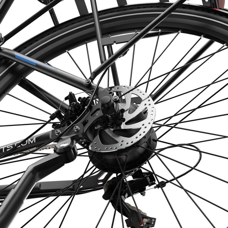 Die vordere Federgabel mit 85 mm Federweg fängt Stöße und Schläge von unebenen Straßen effektiv ab. Verbessert den Komfort und die Kontrolle und verringert die Ermüdung bei längeren Fahrten.